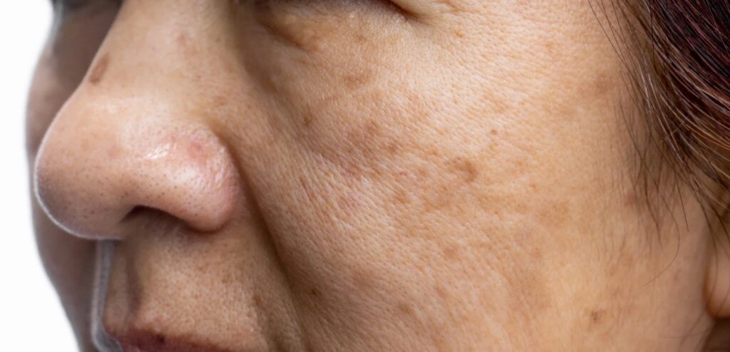 Przebarwienia to widoczne na skórze ciemniejsze plamy, smugi lub nierówne obszary pigmentacji, które powstają na skutek nadprodukcji melaniny. Mogą mieć formę drobnych punktów posłonecznych, przebarwień pozapalnych (np. po trądziku), hormonalnych lub głębokich plam, które trudno usunąć domowymi metodami. Jednym z najtrudniejszych rodzajów przebarwień jest melasma – charakterystyczna, symetryczna pigmentacja pojawiająca się najczęściej na czole, policzkach, skroniach i nad ustami. Melasma jest ściśle związana z hormonami, słońcem, ciążą, antykoncepcją oraz nadreaktywnością melanocytów i ma skłonność do nawrotów.